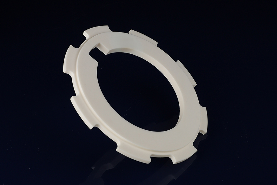 氧化鋁對準環與支撐環是半導體刻蝕、沉積等制程中的關鍵精密部件,憑借材料本征優勢,正在替代金屬與塑料結構。其首要價值在于超高尺寸穩定性:氧化鋁熱膨脹系數低,且硬度高,經精密磨削后圓度可控制在微米級,確保晶圓在升降溫循環中始終維持精準同心度,有效抑制邊緣偏差導致的良率損失。其次,氧化鋁具有優異的電絕緣與等離子體耐蝕性,擊穿電壓達20 kV以上,對含氟、含氯高能等離子體表現出極佳的化學惰性,可在腔體中穩定工作上千小時,顯著降低顆粒污染與金屬離子析出風險。其熱導率約30-40 W/m·K,能迅速將工藝熱量均勻散開,避免局部熱斑導致的晶圓翹曲。此外,氧化鋁可通過注塑-燒結實現凈成形,后期僅需微量精加工,綜合成本較氮化硅低30%以上,為12英寸乃至更先進制程的規模化應用提供了經濟可行的路徑。