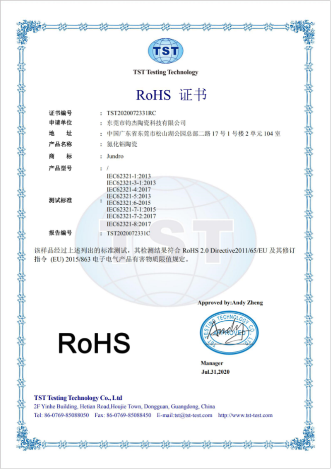 我公司生產(chǎn)的氮化鋁陶瓷采用進(jìn)口粉料燒結(jié)而成,材料通過ROHS認(rèn)證,安全可靠。